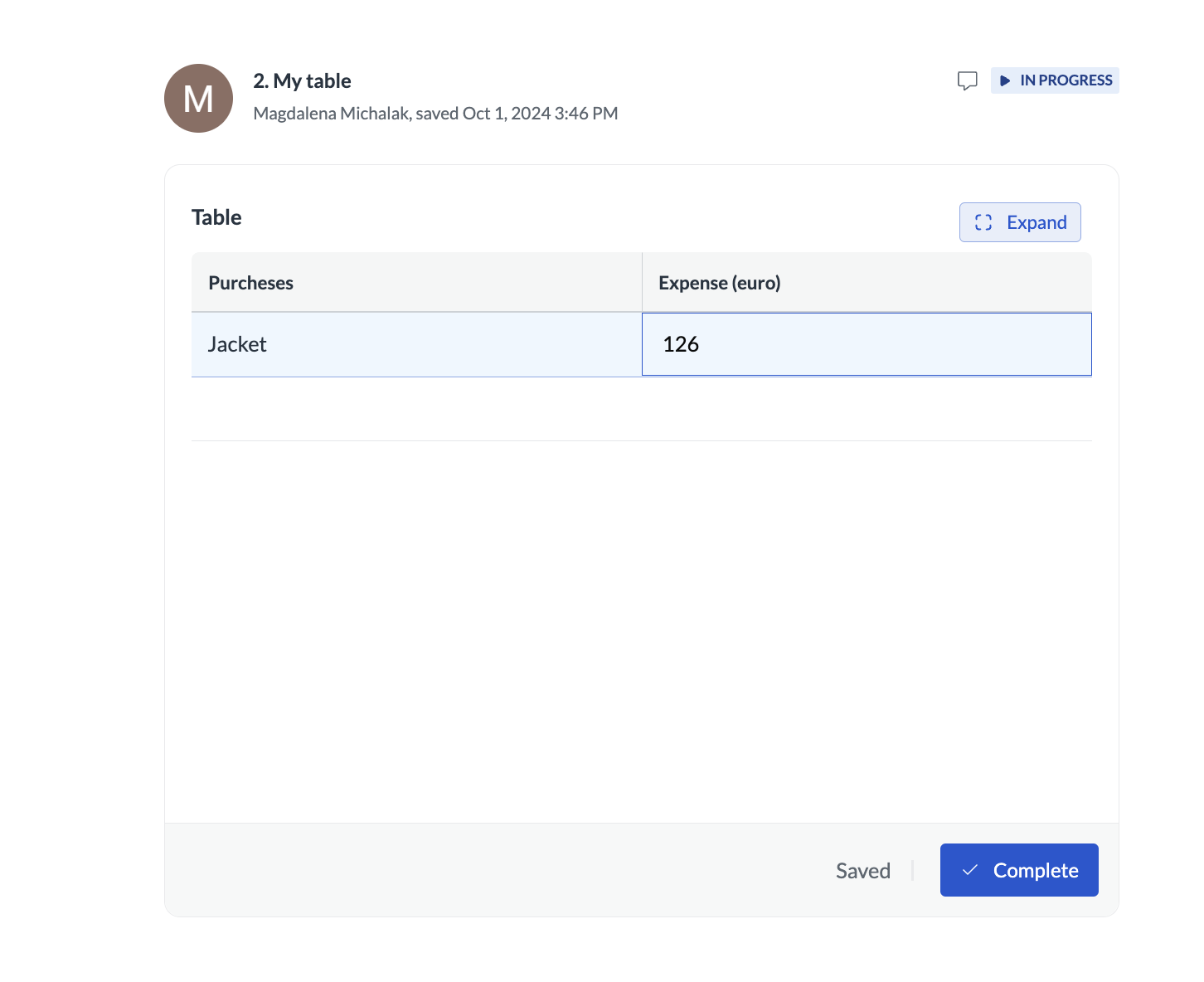 - (Optional) If user input is required for a specific column, flip the toggle on to make the column mandatory. This way, the user won’t be able to complete the step without entering the content in the table cell.